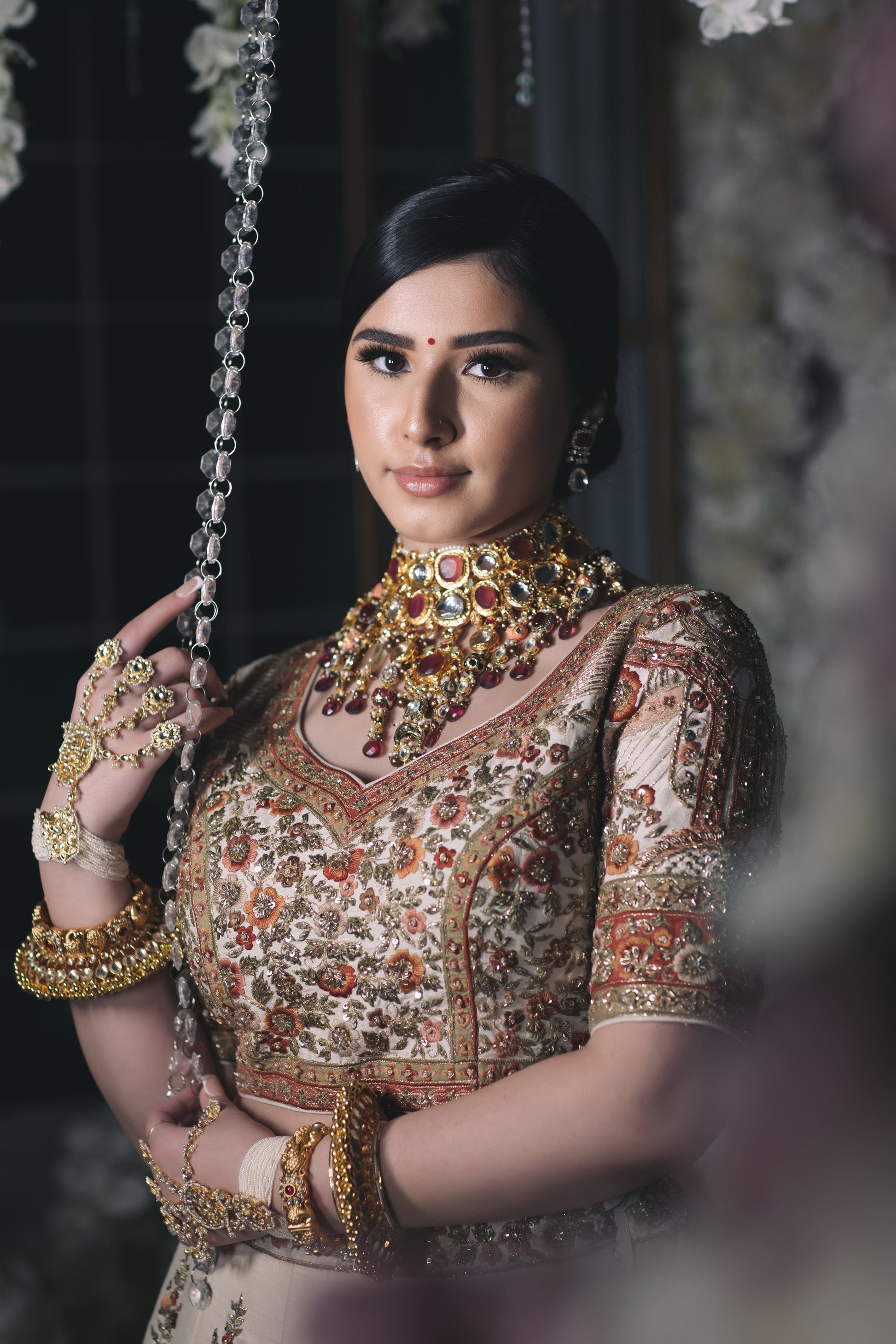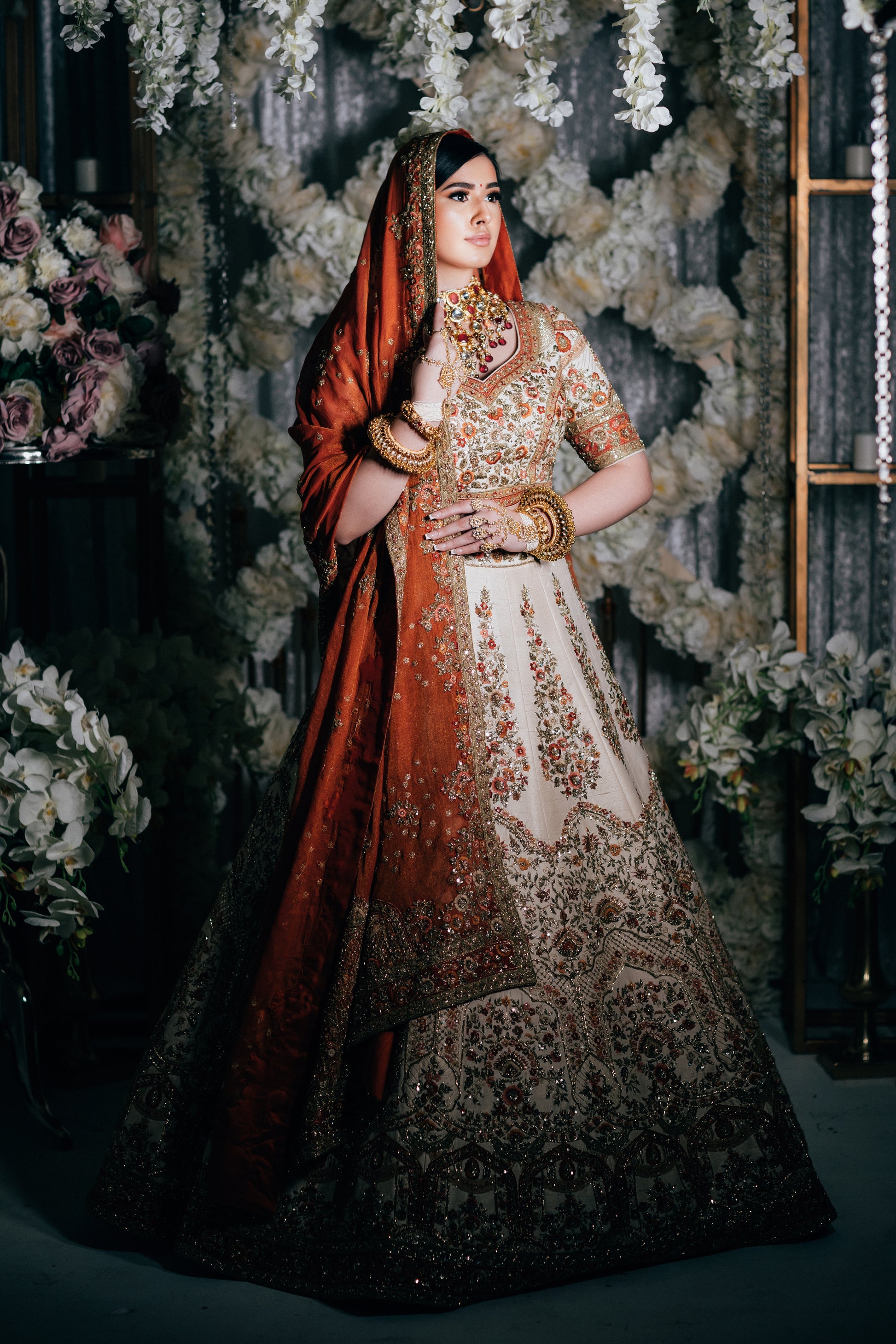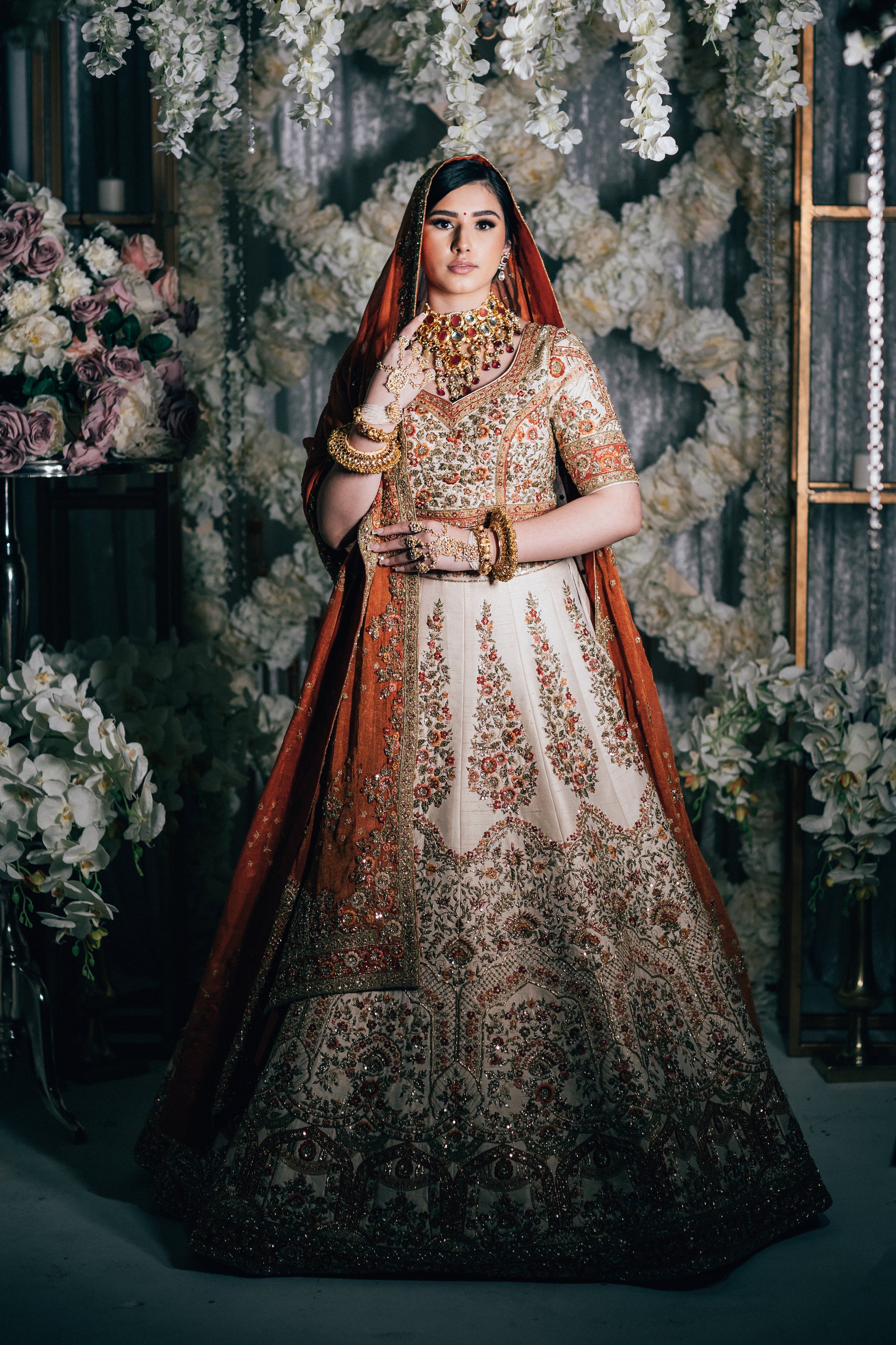 Cream & Rustic Orange Raw Silk Bridal Lengha