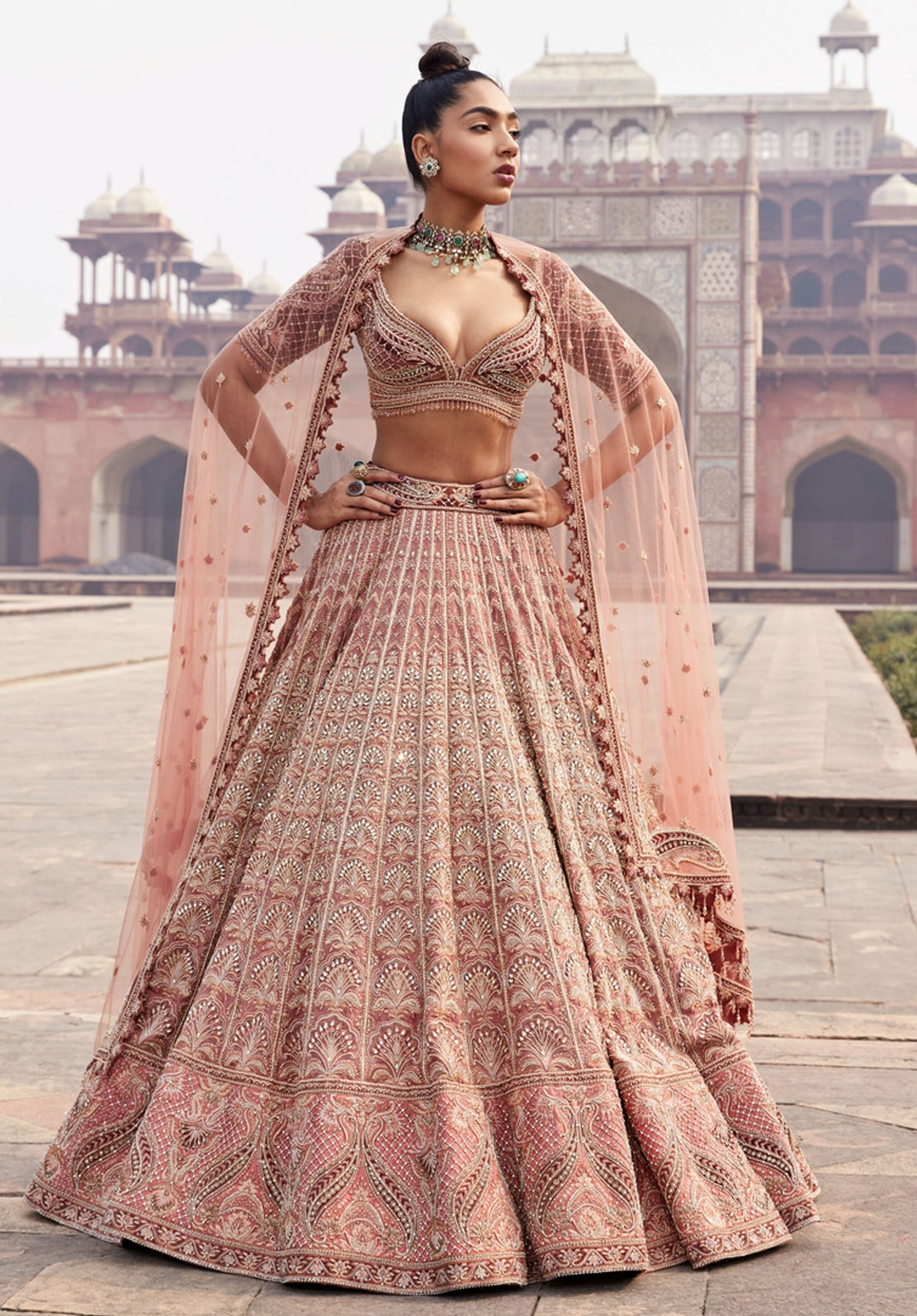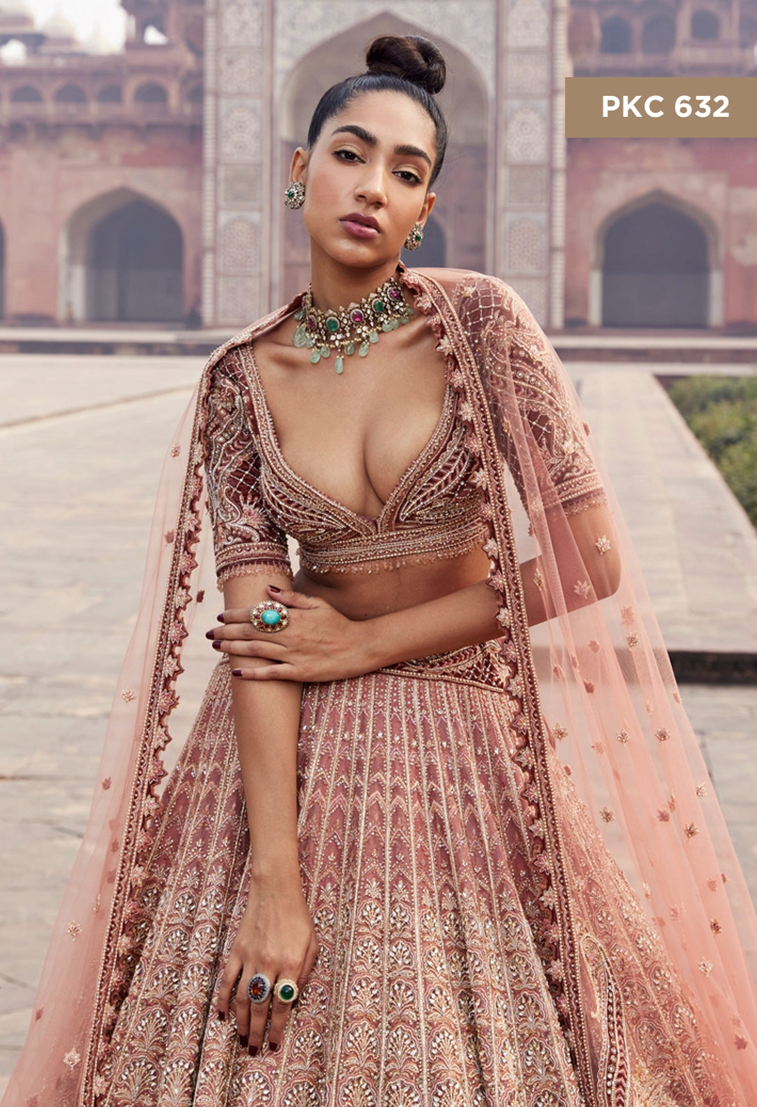 Embrace delicate elegance with our Blush Pink Bridal Lehenga. The soft, romantic blush pink hue exudes femininity and grace, while the intricate embroidery adds a touch of timeless beauty. Crafted with luxurious fabric and exquisite detailing, this lehenga is perfect for the bride who desires a look that is both subtle and breathtaking. Radiate warmth and charm on your special day with a piece that captures the essence of love, purity, and everlasting beauty.