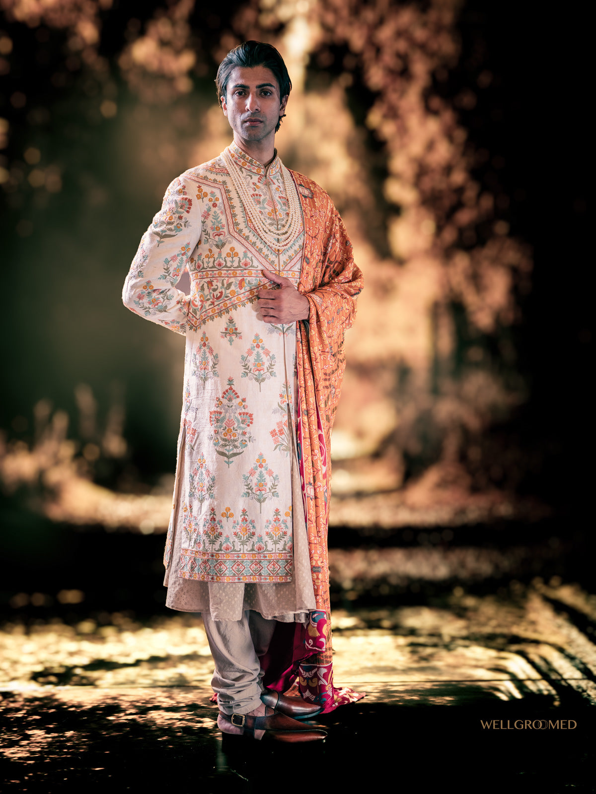 • Meticulously crafted from a luxurious silk blend, featuring intricate multicoloured threadwork with vibrant floral motifs for a regal and eye-catching look