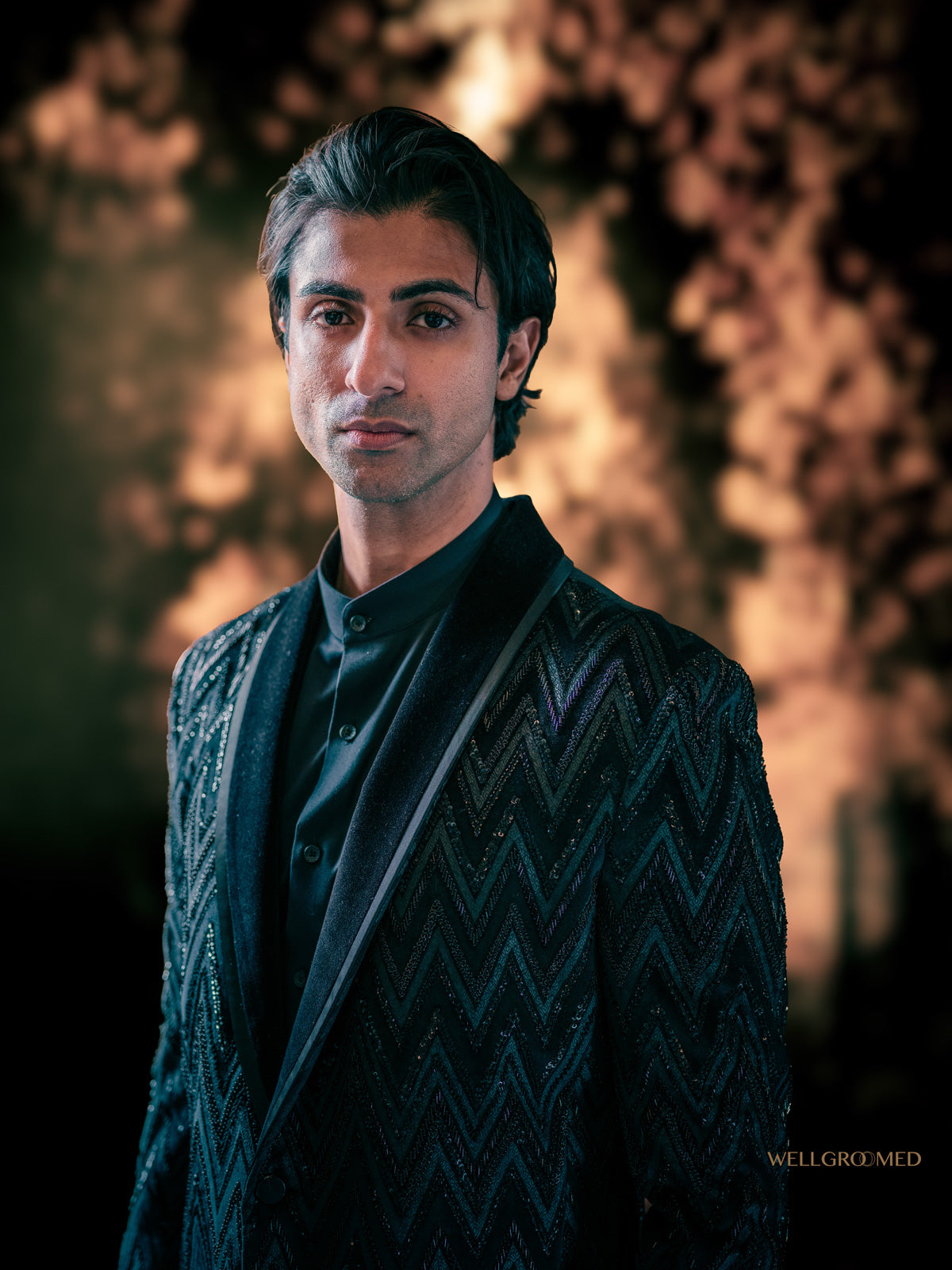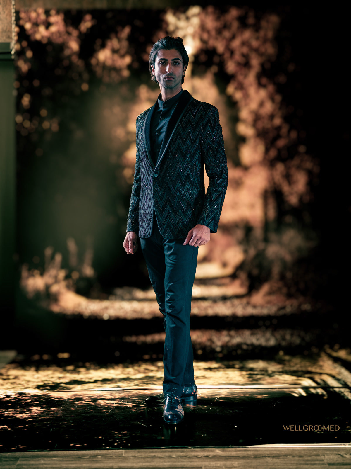 Fully embroidered black blazer in a contemporary geometric overall pattern – bespoke craftsmanship