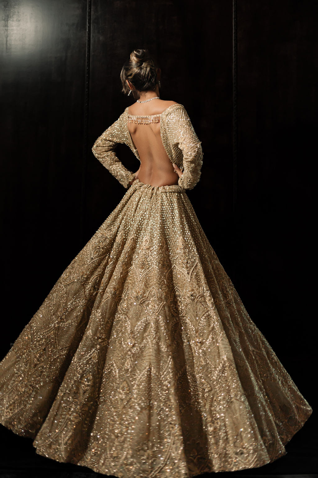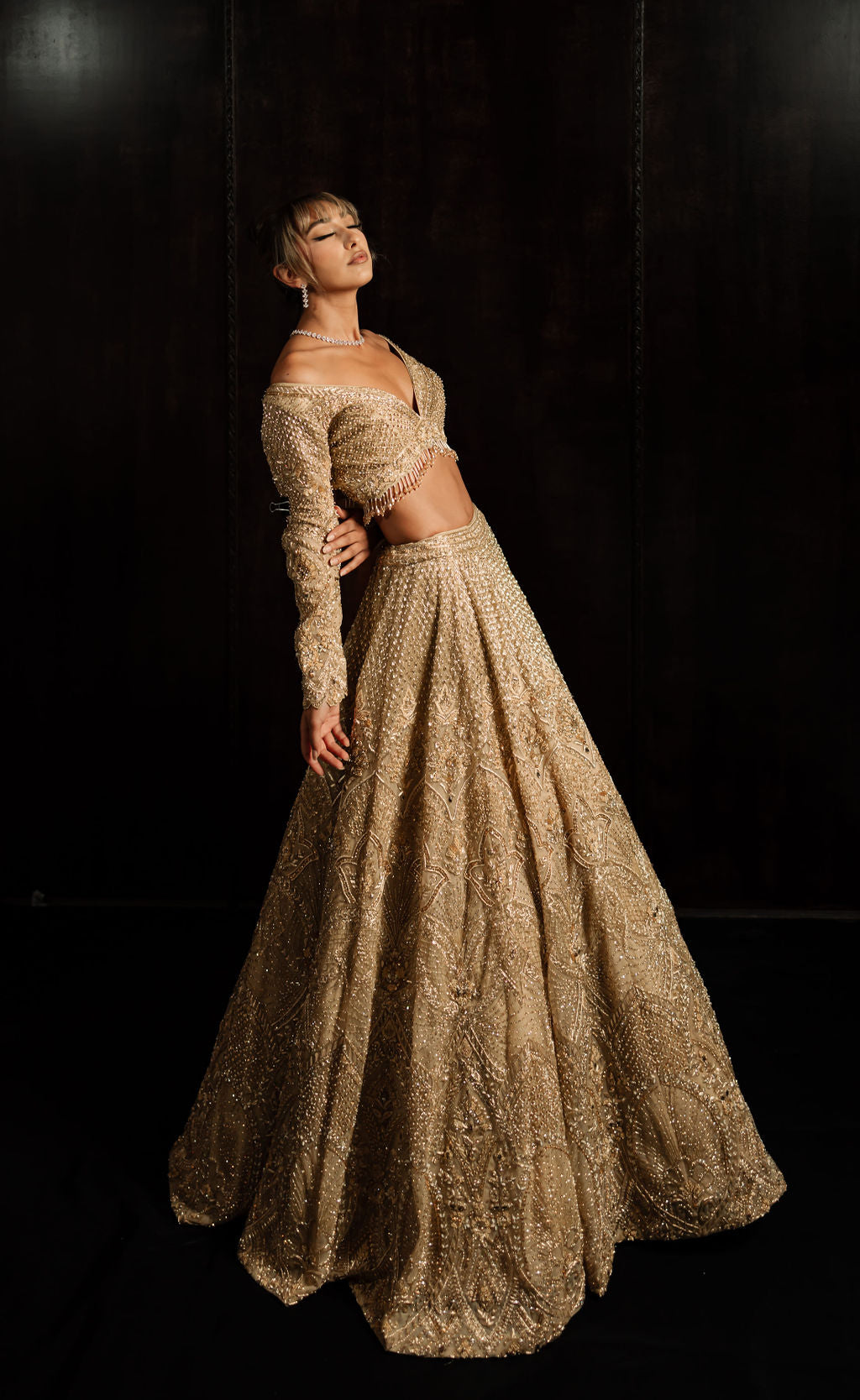 Radiate elegance and sophistication with our champagne gold reception Lehenga, featuring intricate embroidery that combines timeless beauty with modern flair. The soft, luxurious fabric drapes effortlessly, while the exquisite detailing adds a touch of glamour and refinement. Perfect for the modern bride or guest, this Lehenga offers both comfort and style. Fully customizable, it allows you to personalize every detail for a flawless fit and a look that’s uniquely yours on your special day.