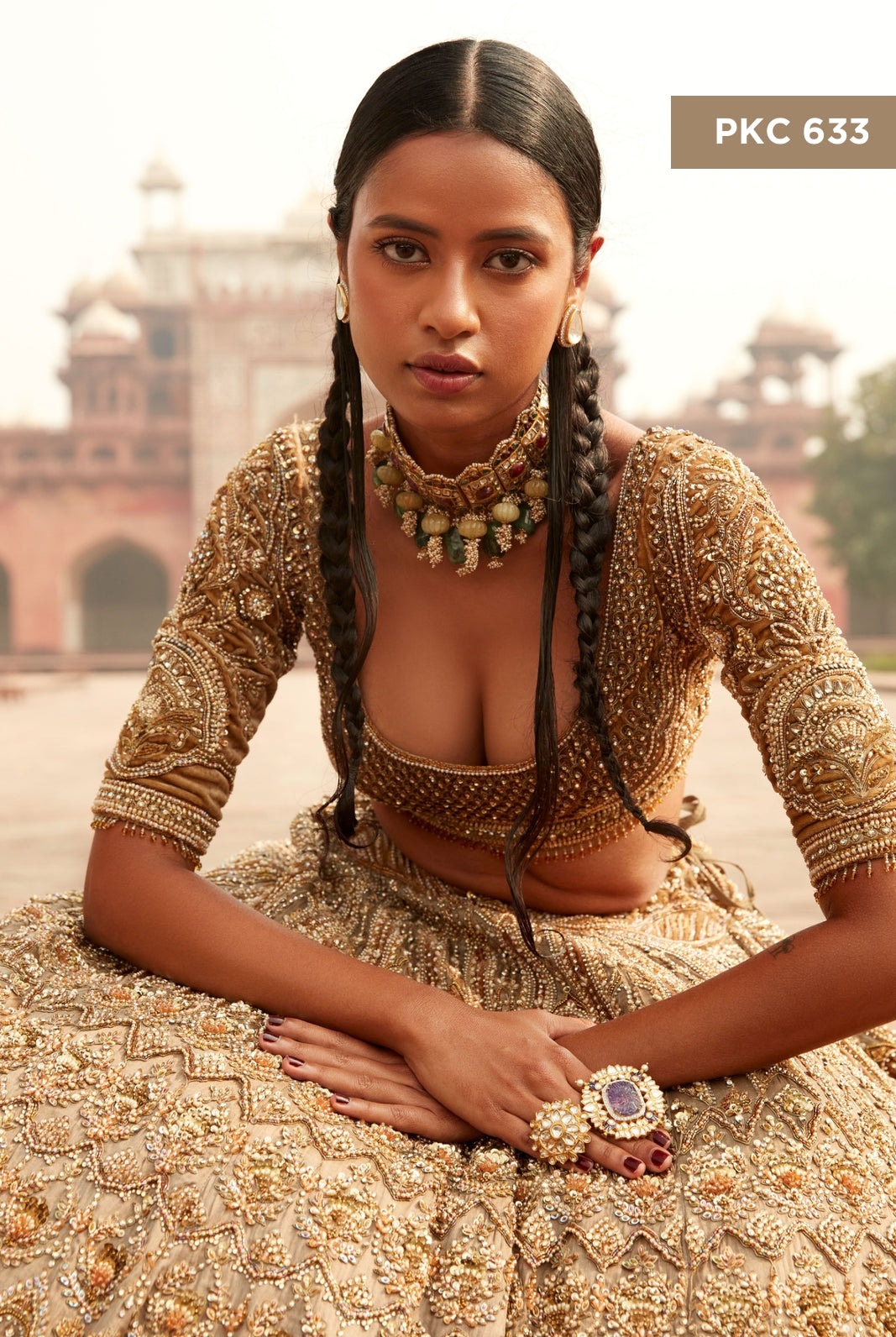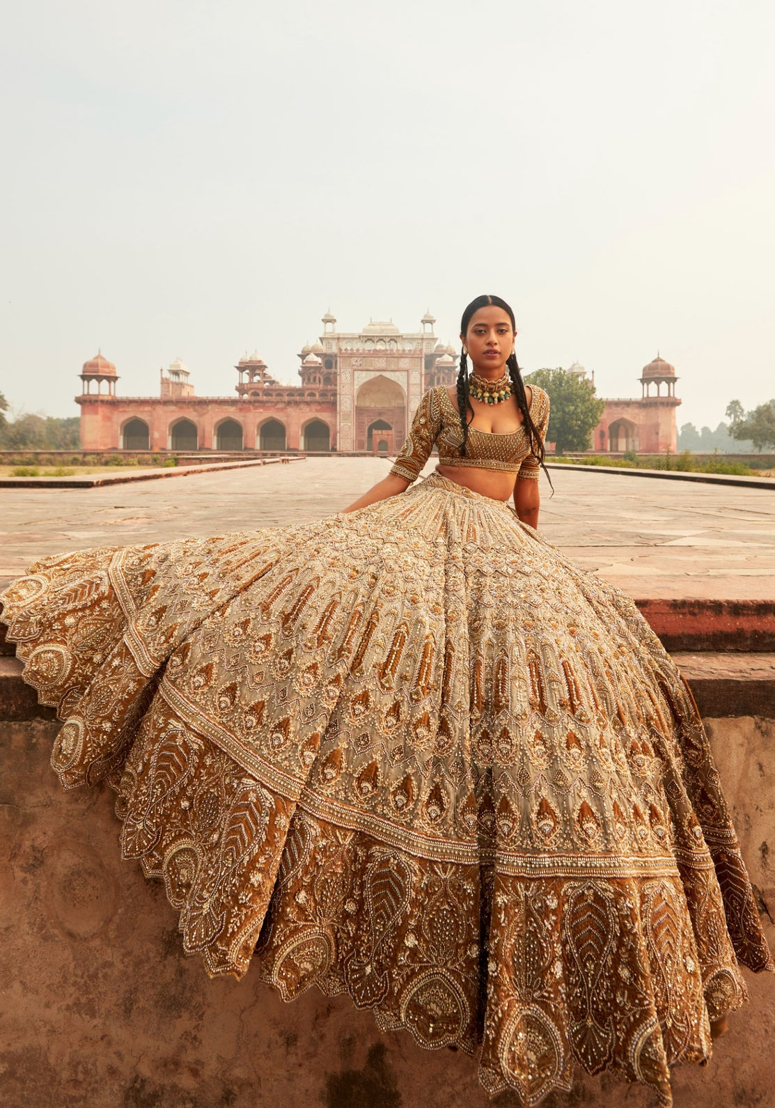 Elevate your reception look with our Champagne Gold Embroidered Lehenga. The luxurious champagne gold hue exudes opulence, while the intricate embroidery adds a sophisticated touch of timeless beauty. Designed to make a statement, this lehenga combines classic elegance with modern allure, perfect for the bride who wants to shine with confidence. Crafted with the finest fabrics and attention to detail, it’s a piece that radiates grace, charm, and unforgettable glamour, making your reception truly memorable.