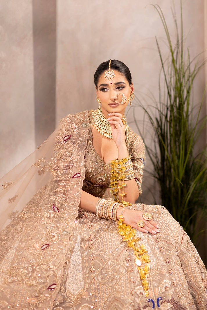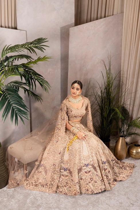 Introducing our enchanting Taupe Bridal Lehenga, a masterpiece of intricate beauty and timeless elegance. From delicate Zari work to shimmering sequins, lustrous pearls, and dazzling accent colors, every detail is meticulously crafted by skilled artisans to create a stunning tapestry of texture and dimension. Each stitch tells a story of artistry and passion, ensuring that every glance captivates and delights.