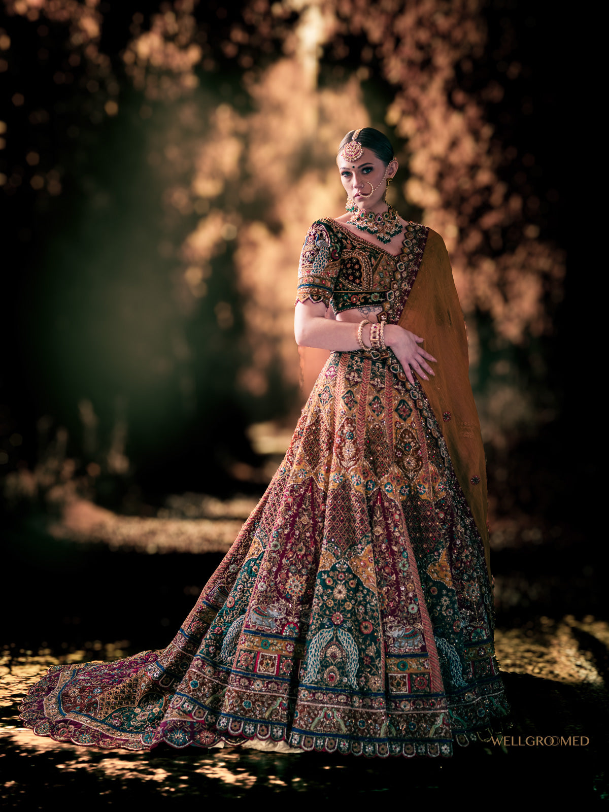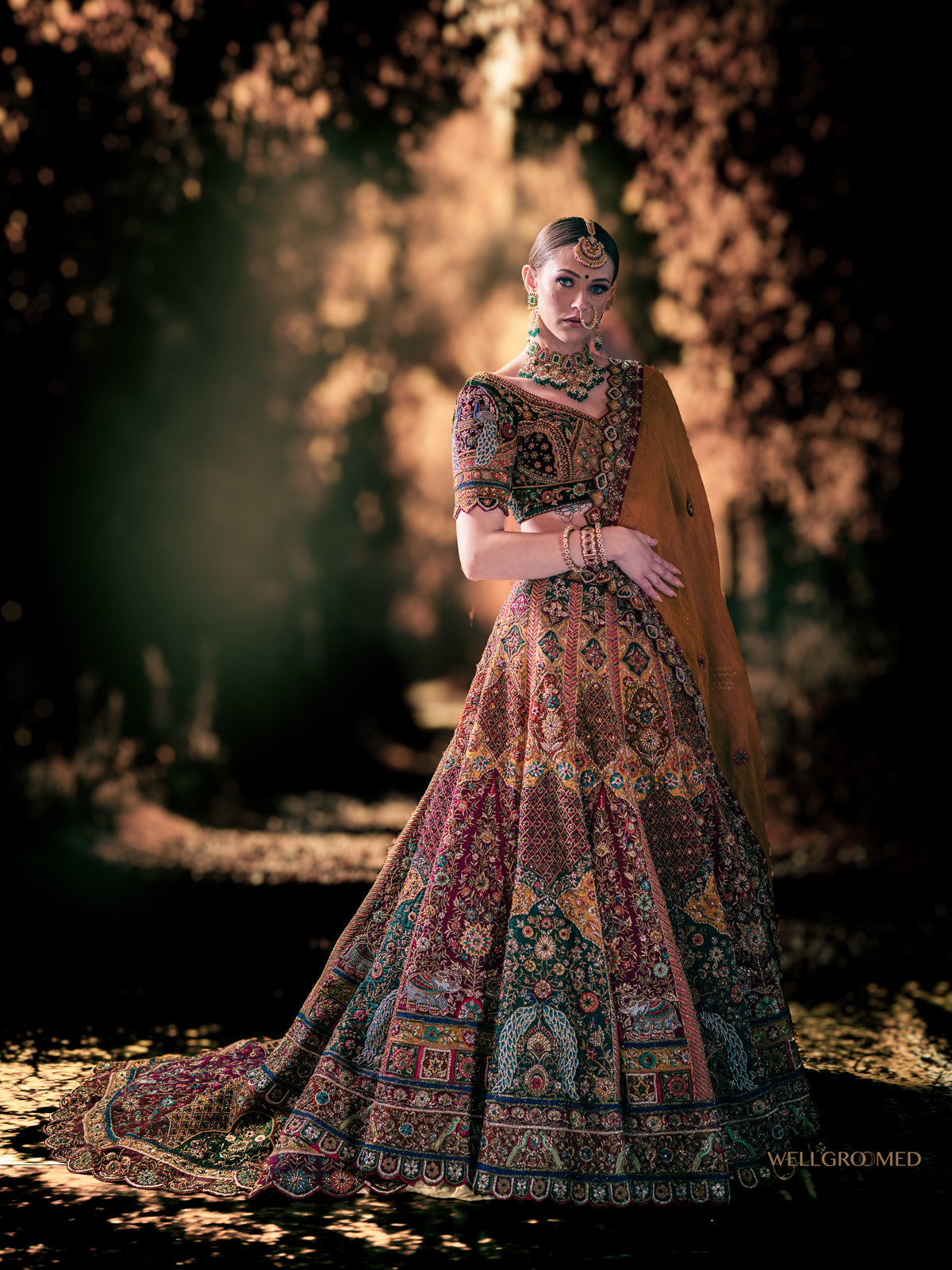 This exquisite bridal Lehenga is meticulously crafted from luxurious organza, featuring intricate motifs that exude elegance and sophistication.