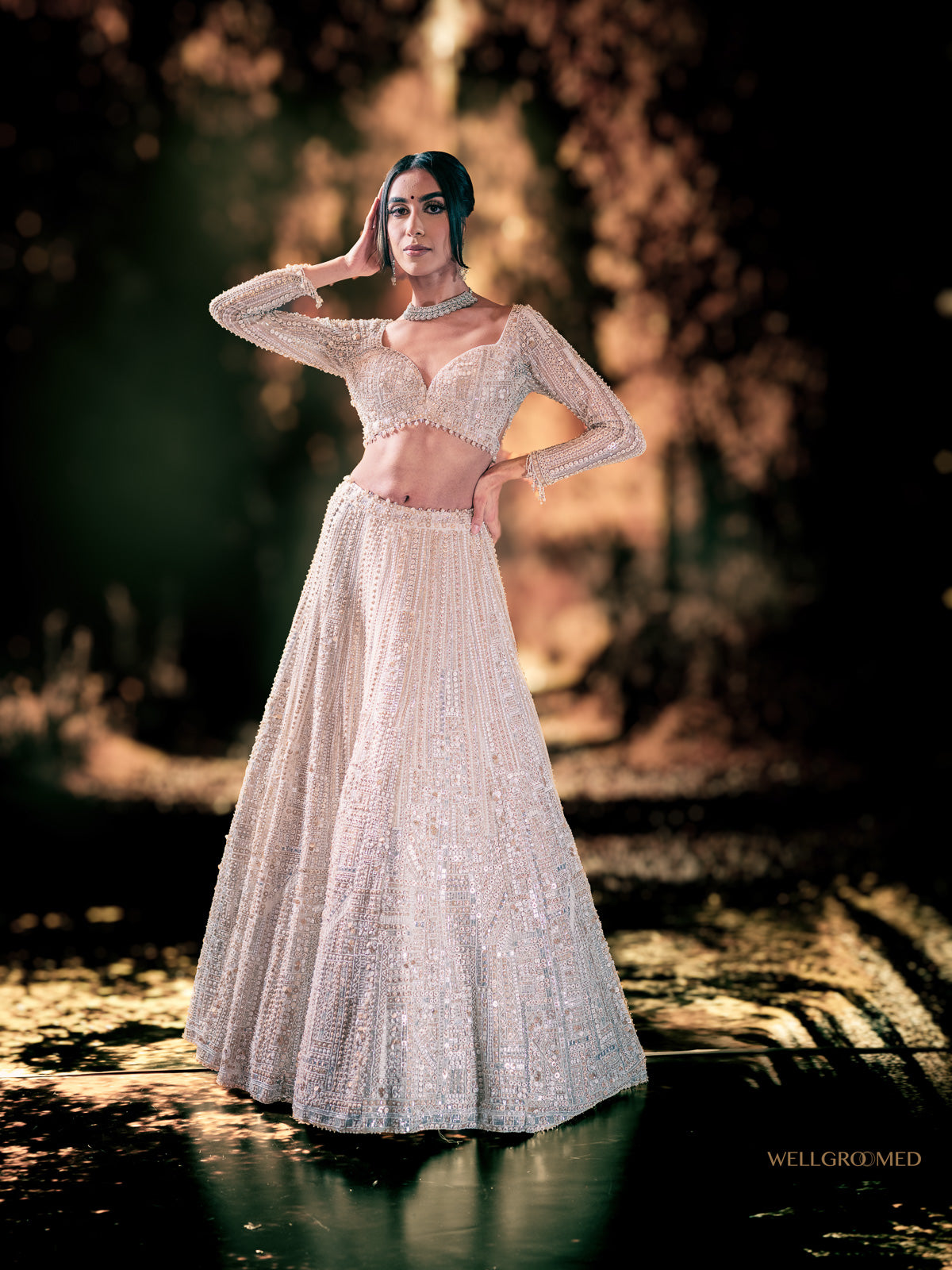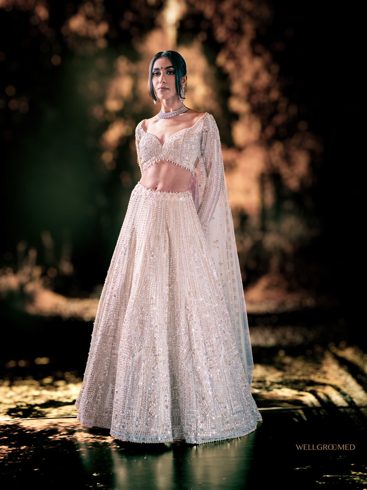White sparkling reception Lehenga