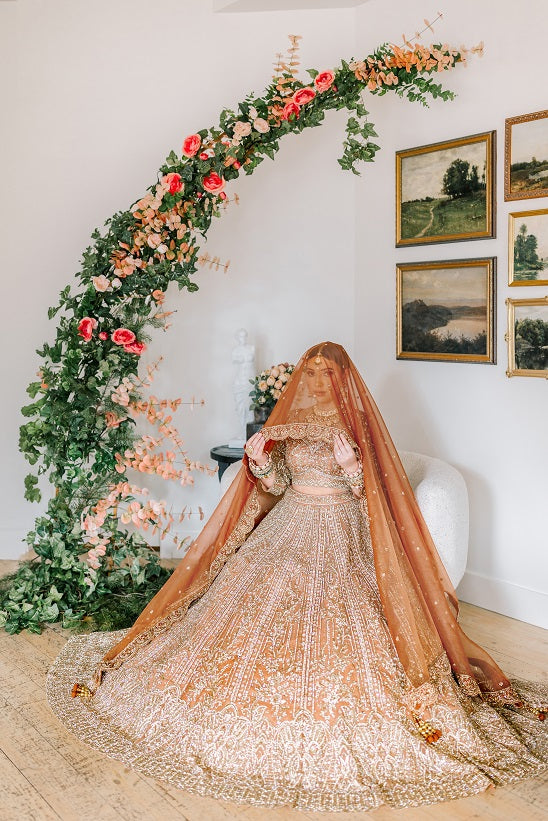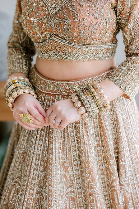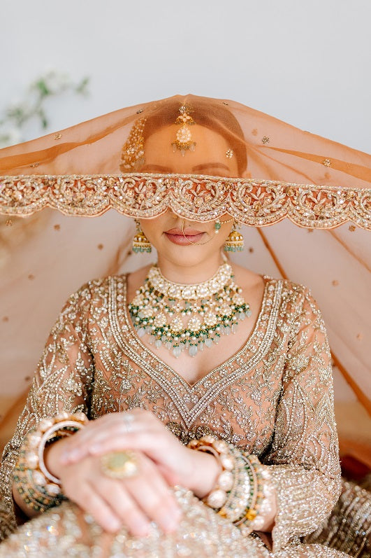 • Adorned with intricate gold embroidery, including Zardozi, Resham, and Dabka workmanship.