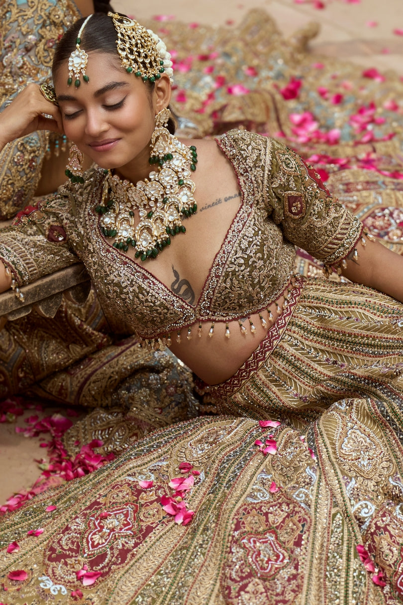 Introducing our exquisite Sage Green Silk Bridal Lehenga, a perfect blend of elegance and tradition. Crafted from luxurious silk, this lehenga features delicate floral embroidery that adds a timeless, romantic touch. The soft sage green hue symbolizes tranquility and grace, making it an ideal choice for brides seeking a refined yet unique look. Whether you're walking down the aisle or celebrating with loved ones, this lehenga will leave an unforgettable impression, radiating beauty and sophistication. Step into your new journey in a piece that truly reflects your inner glow.