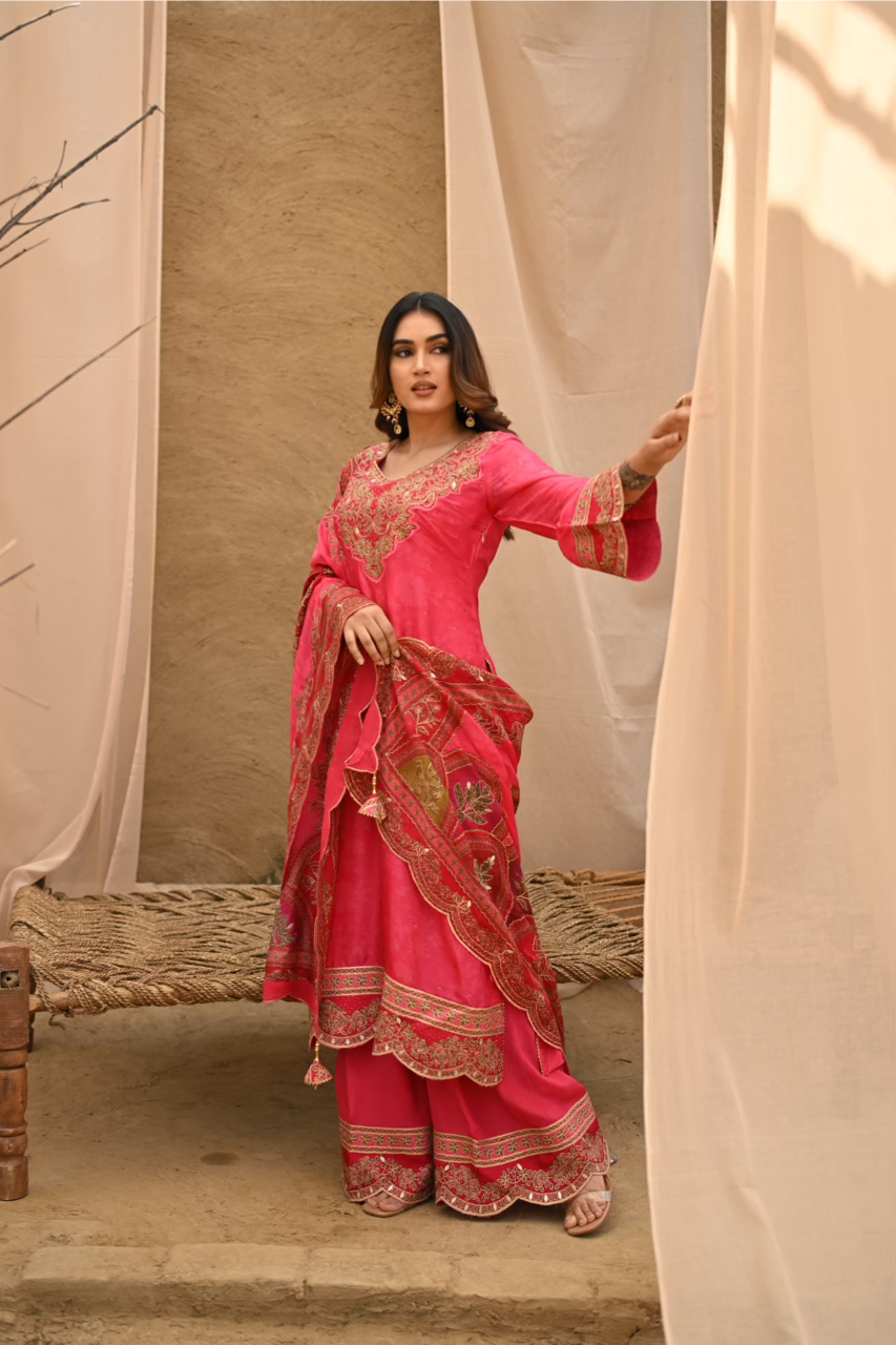 Elevate your style with this elegant pink Indian suit, adorned with intricate embroidery that adds a touch of timeless charm. Crafted from soft, luxurious fabric, this ensemble combines tradition with modern grace, making it perfect for any special occasion. Fully customizable for a flawless fit, this suit promises both comfort and sophistication, tailored to showcase your unique style.