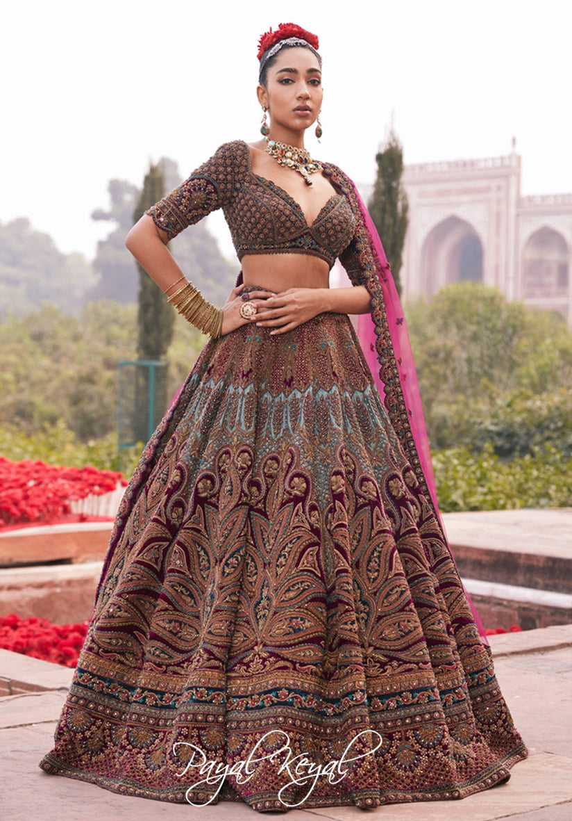 Embrace bold elegance with our Deep Maroon Bridal Lehenga, beautifully accented with striking bright blue details. The rich maroon base exudes sophistication and luxury, while the vibrant blue accents add a refreshing pop of color, creating a stunning contrast that captivates the eye. Crafted with intricate embroidery and luxurious fabric, this lehenga is designed for the bride who seeks a perfect blend of tradition and modernity. Step into your special day with a look that radiates confidence, beauty, and timeless charm.