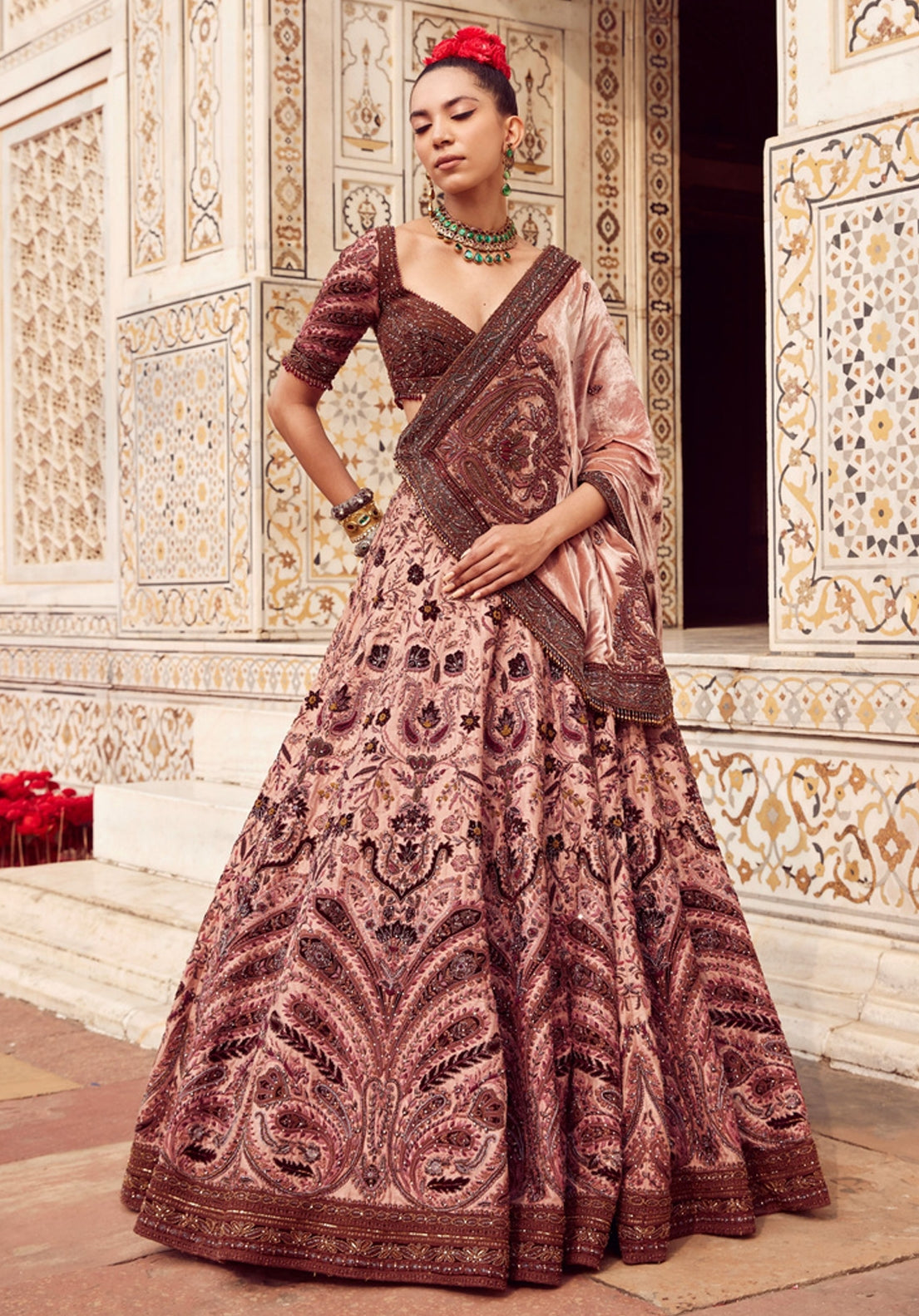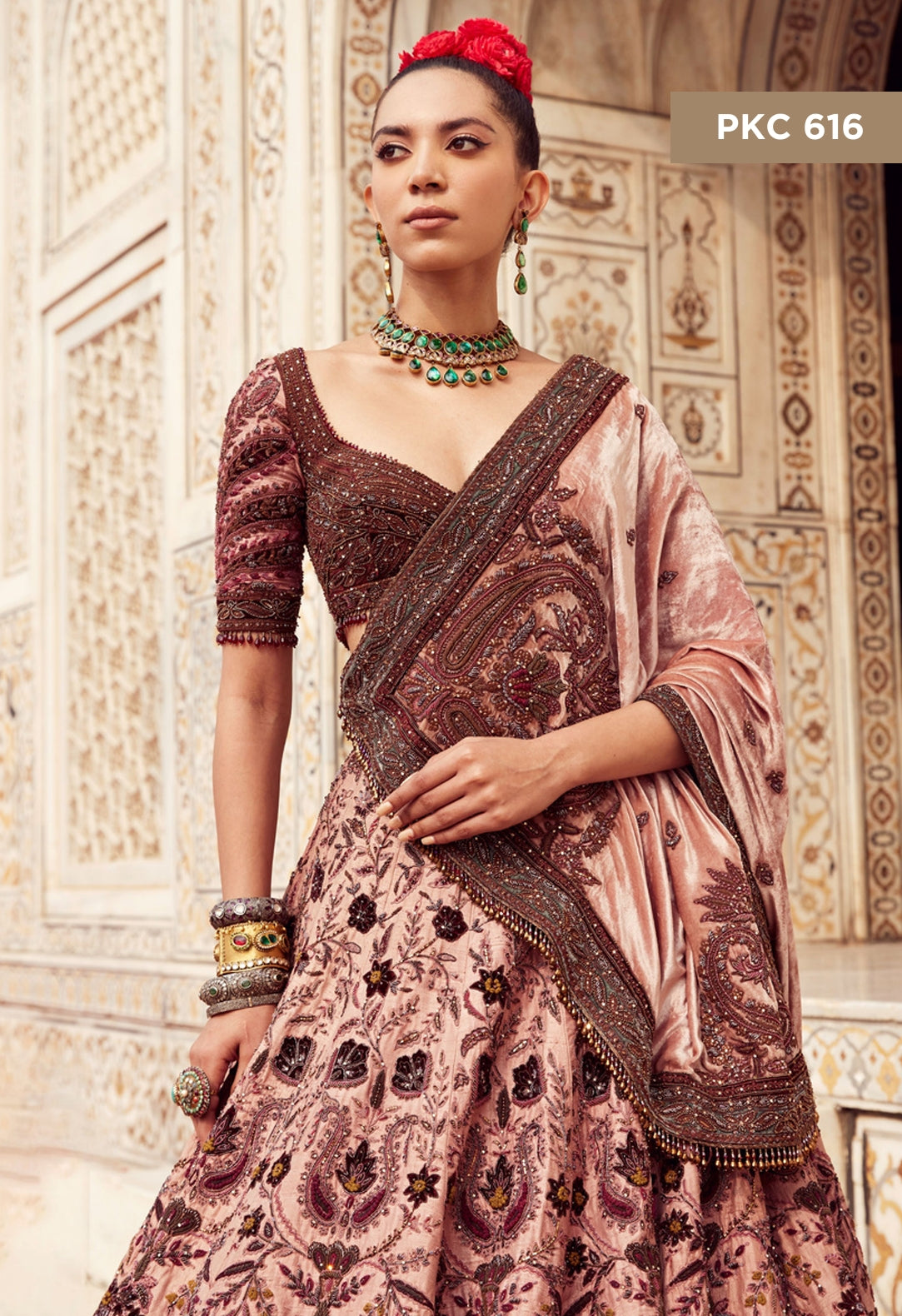 Step into your special day with our Bright Pink and Deep Maroon Bridal Lehenga, a stunning blend of vibrant color and intricate craftsmanship. The bold contrast of bright pink and deep maroon creates a striking, yet elegant look, while the delicate floral embroidery adds a touch of romance and timeless beauty. Designed for the bride who seeks both tradition and modern flair, this lehenga radiates confidence, charm, and sophistication. Celebrate your love with a piece that reflects your unique beauty and unforgettable style.