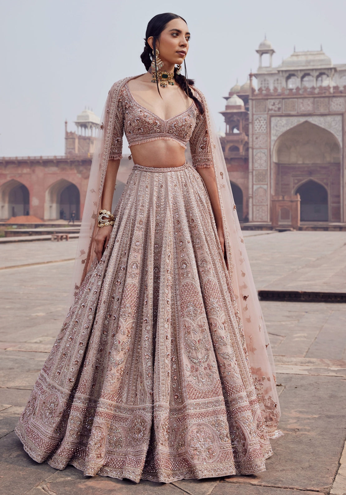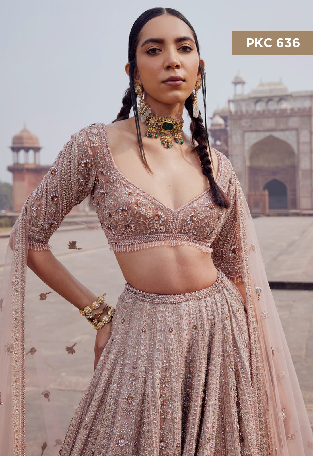 Radiate timeless beauty with our Blush Pink Floral Embroidery Lehenga. The soft, romantic blush pink hue is delicately adorned with intricate floral embroidery, creating a feminine and graceful look. Crafted from luxurious fabric, this lehenga effortlessly blends elegance with a touch of nature’s charm. Perfect for the bride who desires a classic yet fresh look, it is designed to make you feel effortlessly beautiful on your special day. Step into your wedding day with a piece that celebrates love, femininity, and elegance in every stitch.
